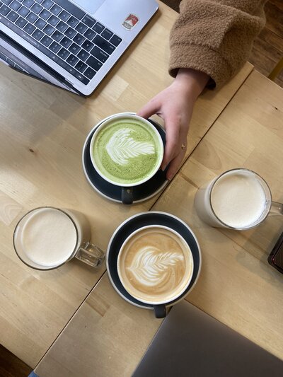 I 100% treat coffee shops like my office! You can find me on any given day camped out at coffee shop editing your photos, planning wedding day timelines, and sipping coffee like it’s my job! My go-to coffee order when I’m out is an iced vanilla latte 1000000% always. But at home, I’ve been loving making iced honey matchas!